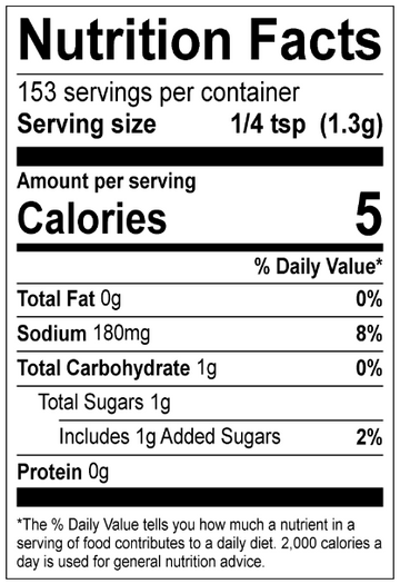 Sugar, Salt, Spices, Garlic*, Natural Flavors, Paprika, Maltodextrin, Natural Hickory Smoke Flavor. *Dried